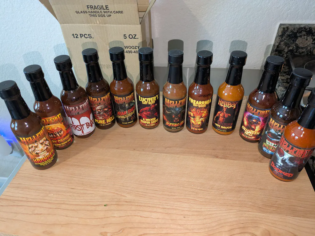 An amazing deal with a fantastic array of superhot sauces. When I opened the box my flabber was completely gasted by the contents. Inside were 12 stupendous sauces, not filled with bs, just absolute hot sauce delight!